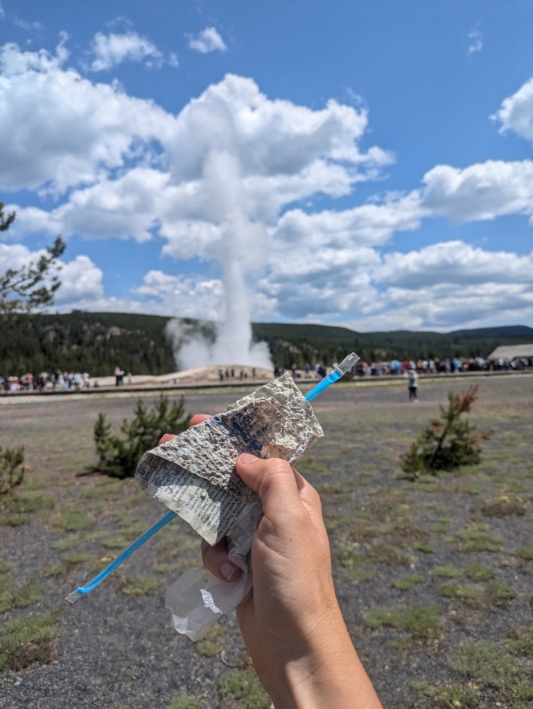 This summer’s trip to Wyoming was AMAZING! These are just some spots we cleaned up! We absolutely LOVED Norris Geyser Basin! In addition to viewing lots of beautiful geysers, we also saw a lot of trash along the walkways and roads–we even found a hubcap! There was very little to clean up while on the trails in the park, as most of our work came from walking to and from the entrance. Good job park rangers for keeping the park so clean and welcoming!